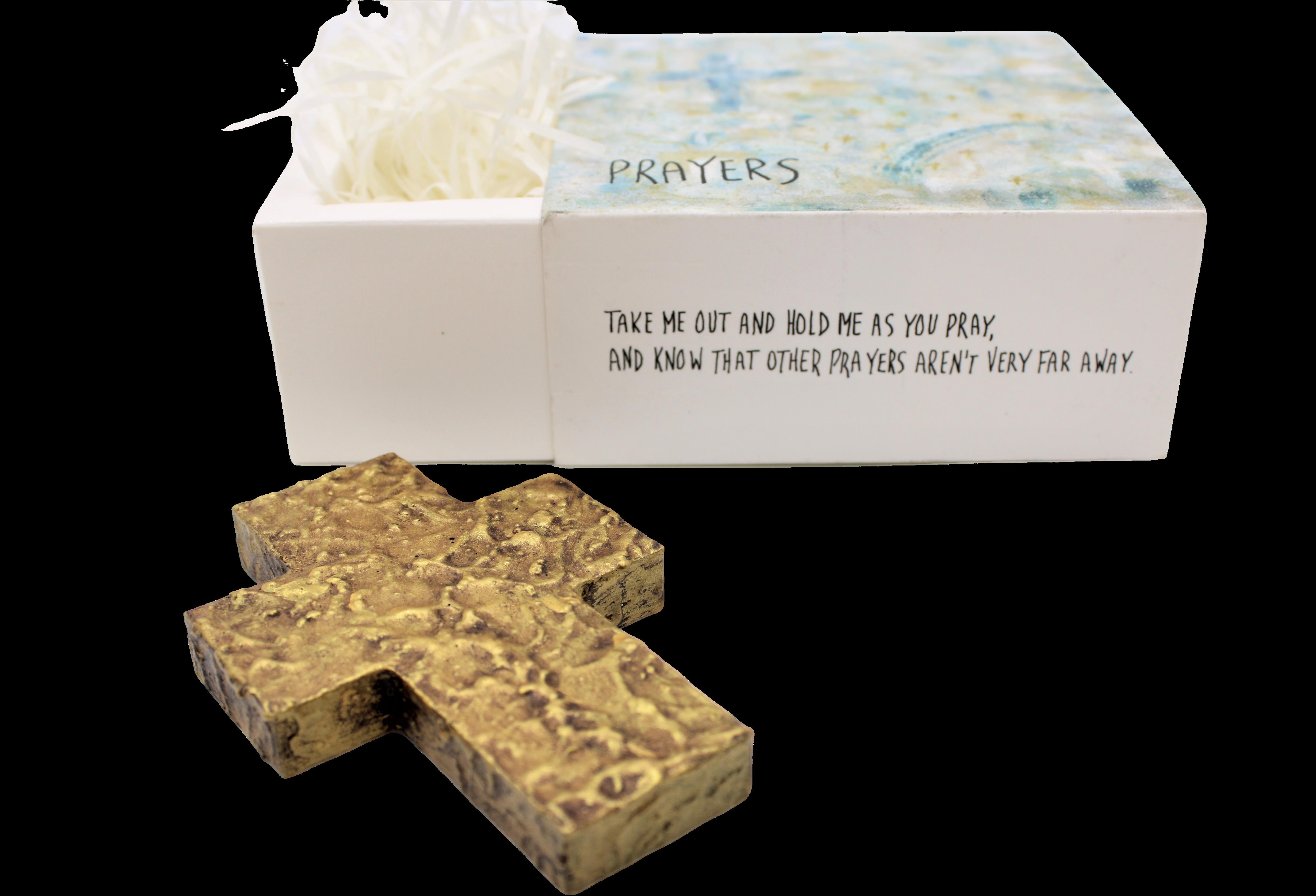 Handpainted Paper Pulp Cross with Beads, Ivory/Gold