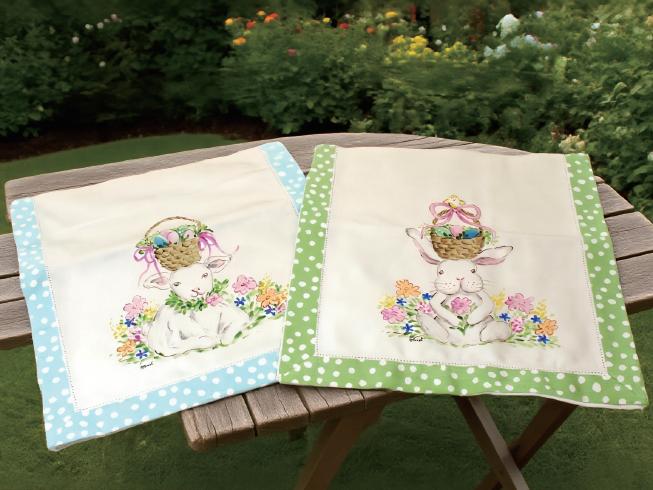 22x20" Handpainted Burlap Door Decor, Bunny Blossoms, 2 assorted ©Haley Bush