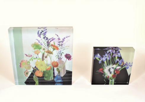 6x.8x6" Acrylic Block Sign, Bright Floral Arrangement, Blue Background ©Dana Shoops