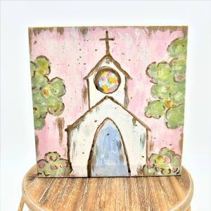 Handpainted Wood Box Sign, Abstract Church ©Jill Alford