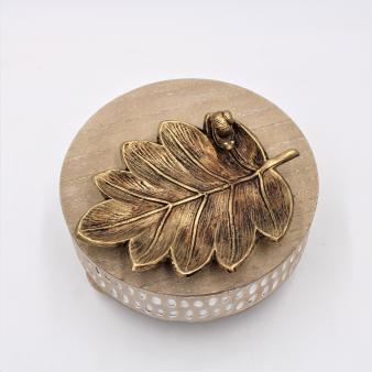 10.25x3.15x1.5" Resin Leaf Trinket with Snail, Antique Gold