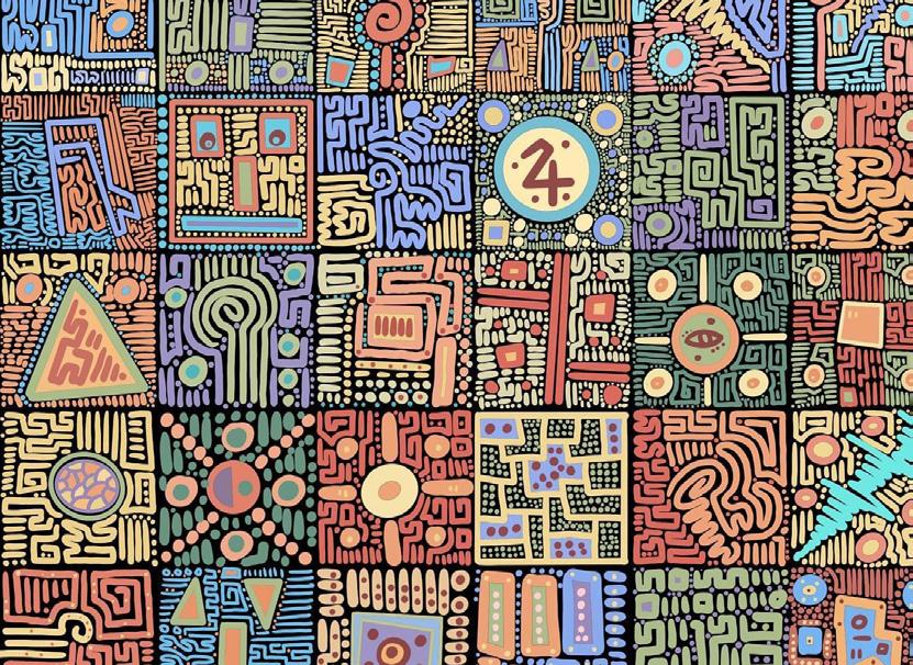 Jus Gana Art - Working from a single dot, his free flowing, meditative process results in a worldly, tribal and cosmic journey onto canvas, primarily focussed on an abstract outlook.