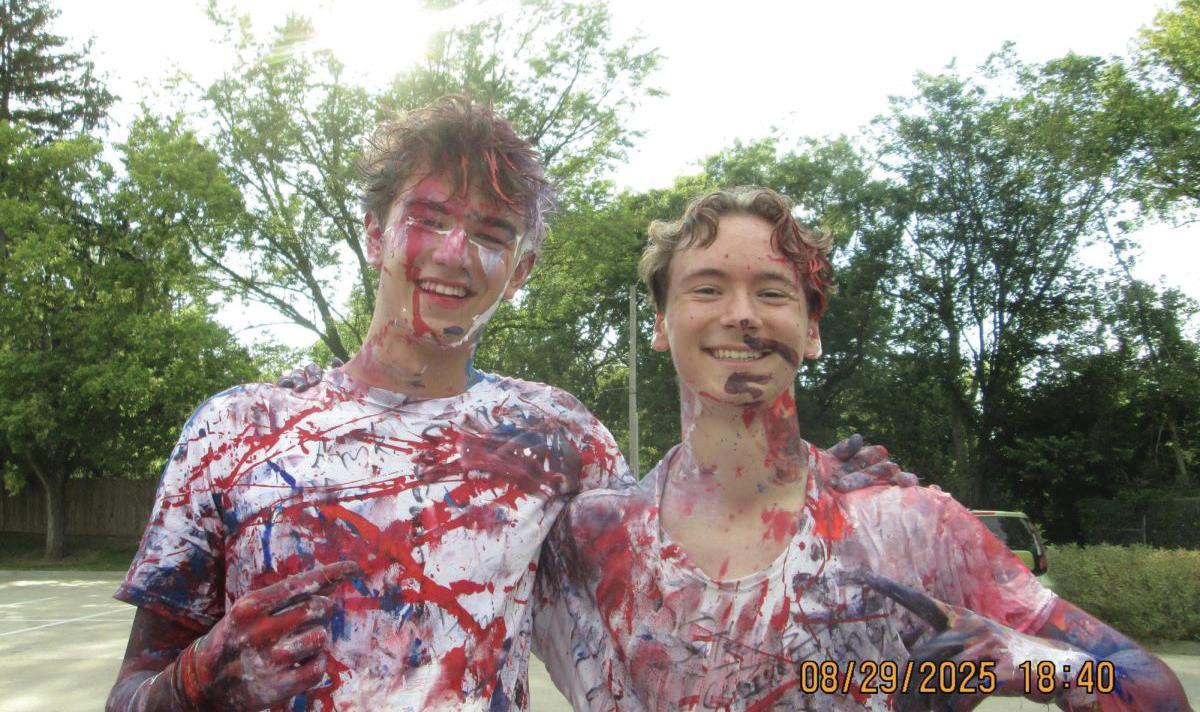 Arik Dinkel '26 and his host brother, Lukas Schoen '26, pose at the annual senior paint ght. PHOTO COURTESY OF ARIK DINKEL