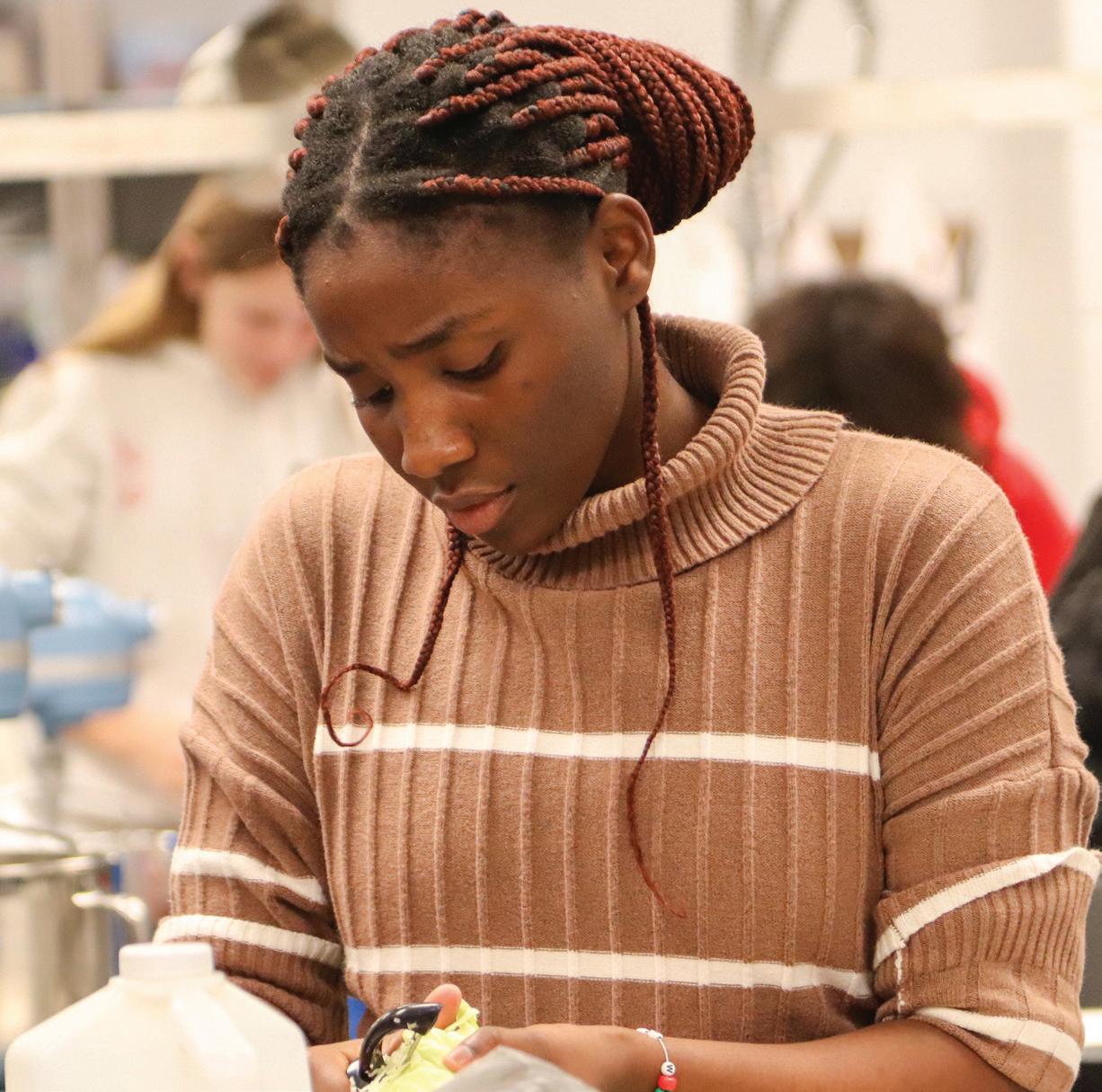 “Whenever you’re choosing your partner, choose someone you like to work with. Dividing up the tasks, making a plan to decide how you want to execute them, and a recipe are really important, too. "at was the rst thing we did,” Sherburne ‘29 said.