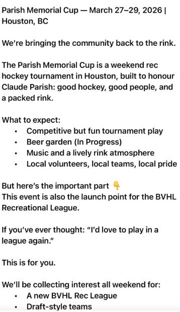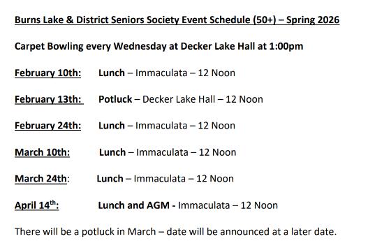 Bert Patrick Tournament will be held on Friday, February 20 & Saturday, February 21. Call 250.845.8844 to