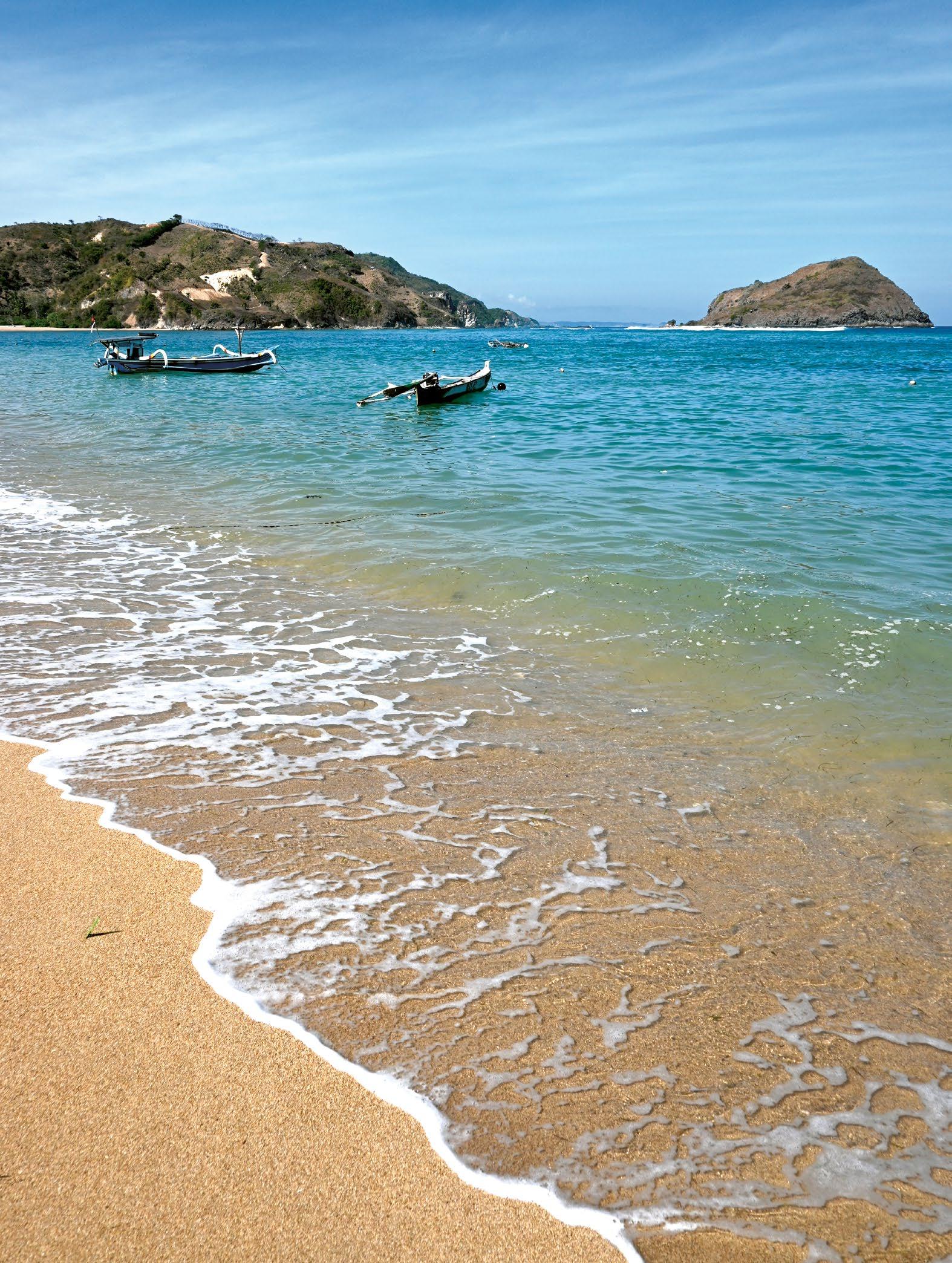 The water at Tanjung Aan is calm and clear, with a white sandy bottom making it fantastic for swimming. There are also perahu (local outrigger boats) available for hire, offering trips around the bay and to the nearby surf breaks.