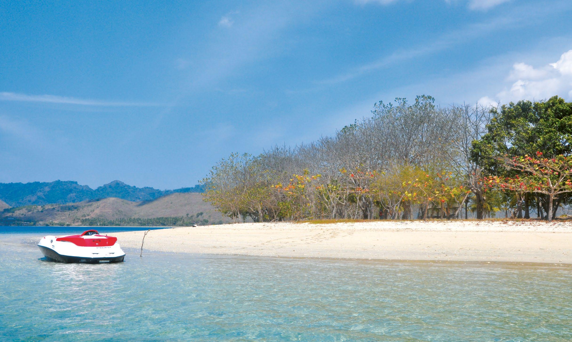 and a restaurant. The island is small and the beach has soft white sand and a good reef just offshore for snorkelling.