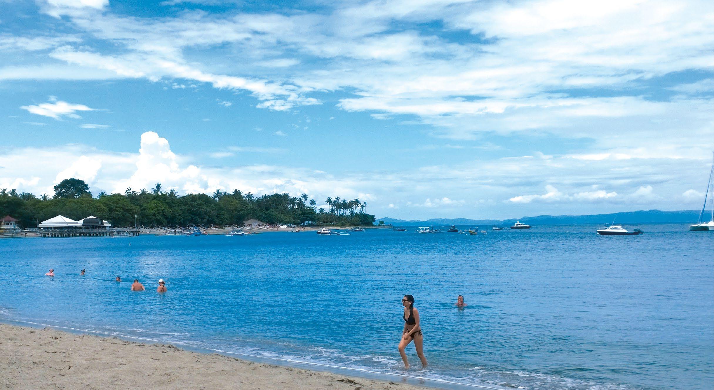 It is a spectacular beach with calm blue waters, perfect for swimming and spending a day lazing on the white sand. There are stalls on the beach selling drinks, snacks and simple meals.