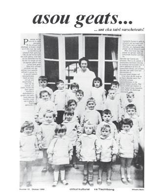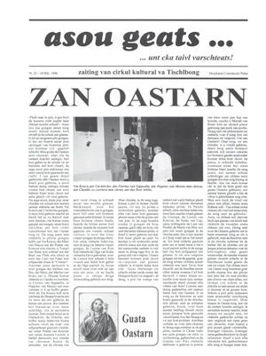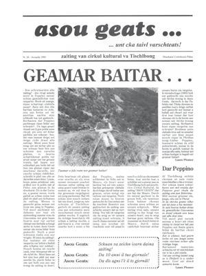 Lo “zaiting van Cirkul Kultural va Tischlbong” nasce probabilmente, ma non vorrei appropriarmi di meri ti che non sono affatto miei, da quel clima culturale, da quella spinta collettiva che aveva portato Timau a un’attenzione forse circoscritta, ma fuori da un limbo penalizzante. L’infittirsi del dibattito attorno alla mi noranza di lingua tedesca, la proposta settimanale di uno spazio dedicato, l’approdo, va detto, anche ai quo tidiani locali, furono, credo, il brodo di cultura in cui nacque Asou Geats.