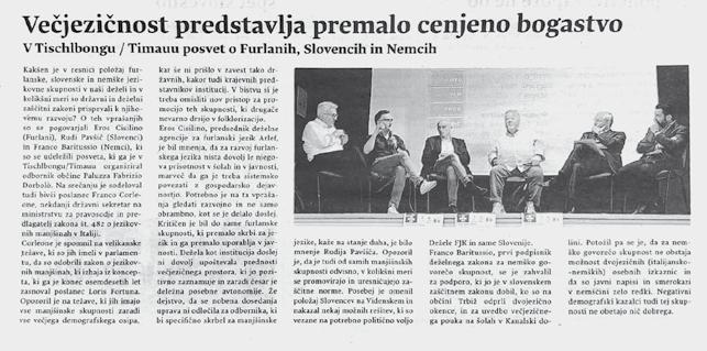 Franco Baritussio, primo firmatario della legge regionale di tutela della minoranza linguistica tedesca ha ricordato la realtà trilingue di Tarvisio e ha condiviso l’im portanza di lavorare assieme anche per raggiungere obiettivi che la minoranza tedesca non ha ancora diritto, ad esempio le carte d’identità bilingui che invece la minoranza slovena può richiedere.