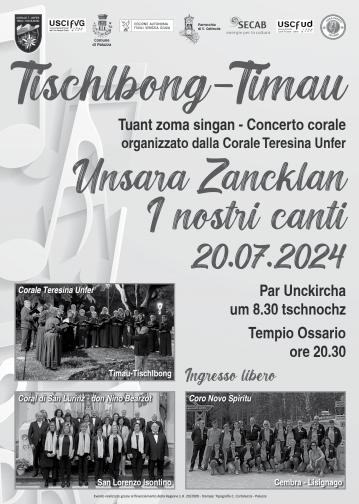 Ad introdurre, l’esecuzione di tre brani in timavese a cura della corale teresina Unfer: Liab unt edelvais, vain sain mitanondar plaim e Unsara baibar. canti legati alla lingua, alle tradizioni, alla cultura della comunità di timau. Nell’occasione sono state espresse parole di benvenuto ai tre nuovi coristi: omar, Felice e Roberta.