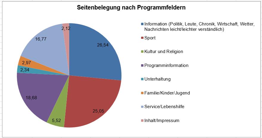 •Information •Kultur •Religion/Ethik •Wissenschaft/Bildung •Service/Verkehr/Wetter • Sport •Familie/Gesellschaft •Unterhaltung