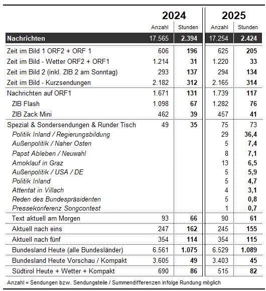 Ergebnisse der Inhaltsanalyse für Österreich 1 in der Musterwoche 2025 zwischen 8. bis 14. September: