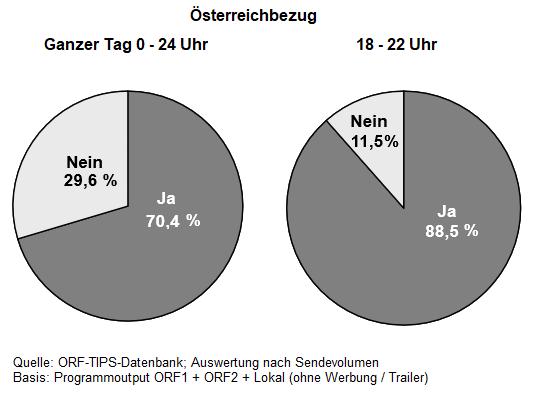 Als Basis für die Auswertung nach den vier Kategorien Information, Unterhaltung, Kultur und Sport wurden alle Sendungen/Sendungsteile des gesamten ORF-TV-Programms exkl. Werbung, Programmtrailer/Promotion, Moderation/Hinweisen u. ä. herangezogen.