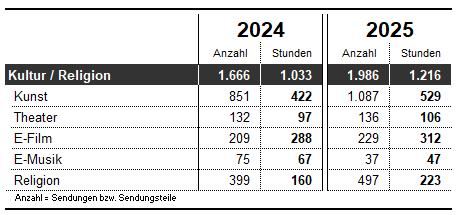 Der ORF hat im Jahr 2025 seinen Auftrag gemäß § 4 Abs. 3 ORF-G erfüllt und in den Hauptabendprogrammen des ORF-Fernsehens (20.00 bis 22.00 Uhr) in der Regel anspruchsvolle Sendungen zur Wahl gestellt.