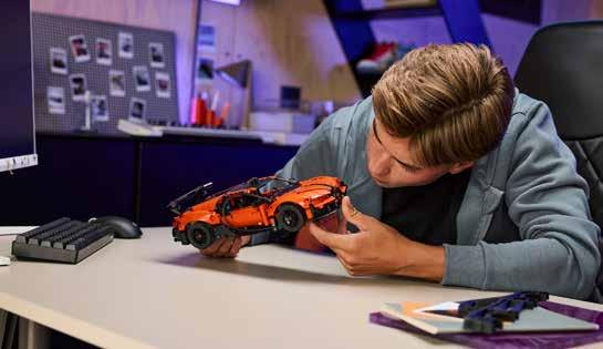 Crafted for those who demand an adrenaline thrill, the Bugatti Chiron Pur Sport is geared towards agility and precision. Lighter than its siblings and designed with optimized aerodynamics and shorter gear ratios, it stands as the most dynamic expression of the Chiron family, built for drivers who live for winding roads. The LEGO® Technic™ Bugatti Chiron Pur Sport brings this engineering excellence to life through 771 pieces, capturing the distinctive character of the Chiron Pur Sport with a vibrant orange bodywork and black livery. Details include working steering, opening doors and hood, as well as an intricate model of the iconic Bugatti W16. Measuring over 3 inches (8 cm) high, 11 inches (29 cm) long and 5 inches (13 cm) wide, the 771-piece creation makes a remarkable display for builders aged 9 and older.