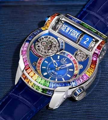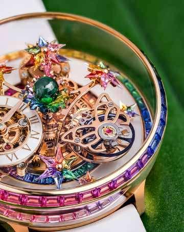 Jacob & Co. has cultivated an intimate and uniquely creative rapport with different colored gemstones. Color is a profound means of creativity and an integral part of the Jacob & Co. design language, especially in watchmaking. The brand doesn’t just use every gem in the rainbow—it transforms them into artistic masterpieces.