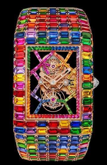 The use of colored gemstones is not merely an embellishment but a cornerstone of the brand’s creative vision, ensuring each timepiece tells a story as rich and vivid as the gems it bears.
