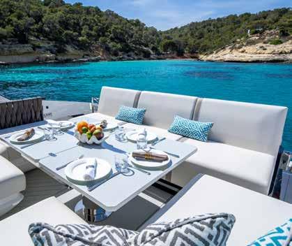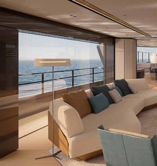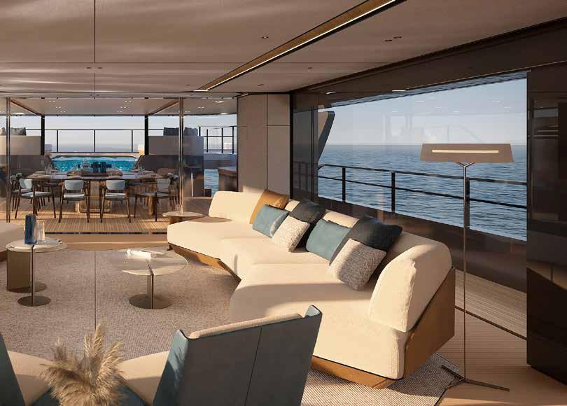 The new layout means that architecture firm m²atelier –working with Azimut for the first time – could create an interior design that balances functionality and aesthetics, making the owners’ experience central and offering versatile settings to configure according to how they like to spend their time with family and friends.