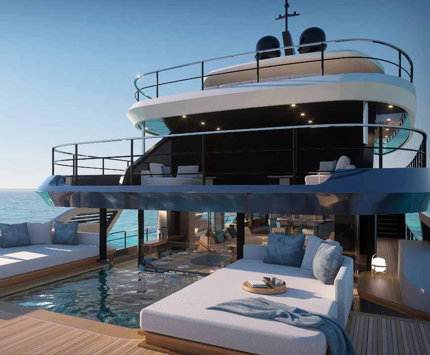Grande 44M amazes by offering something that doesn’t exist today: a superyacht with reduced CO2 emissions that brings bold, flowing lines to a design with four decks rather than the traditional three, embracing and sculpting significant volumes. She’s a boat that offers a unique and unexpected onboard lifestyle for this segment. The stand-out feature? The Upper Deck, which can be converted into an Owner’s Deck with uninterrupted sea views both forward and astern.