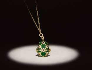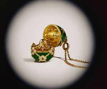 The egg’s surface features a geometric guilloché engraved pattern, to juxtapose the more organic shape of the egg, and each piece has been decorated with green enamel to perfectly pair with the egg objet. Subtle nods are woven into the design, including the bail of the locket which takes its inspiration from the letter ‘O’ in the film’s title treatment.