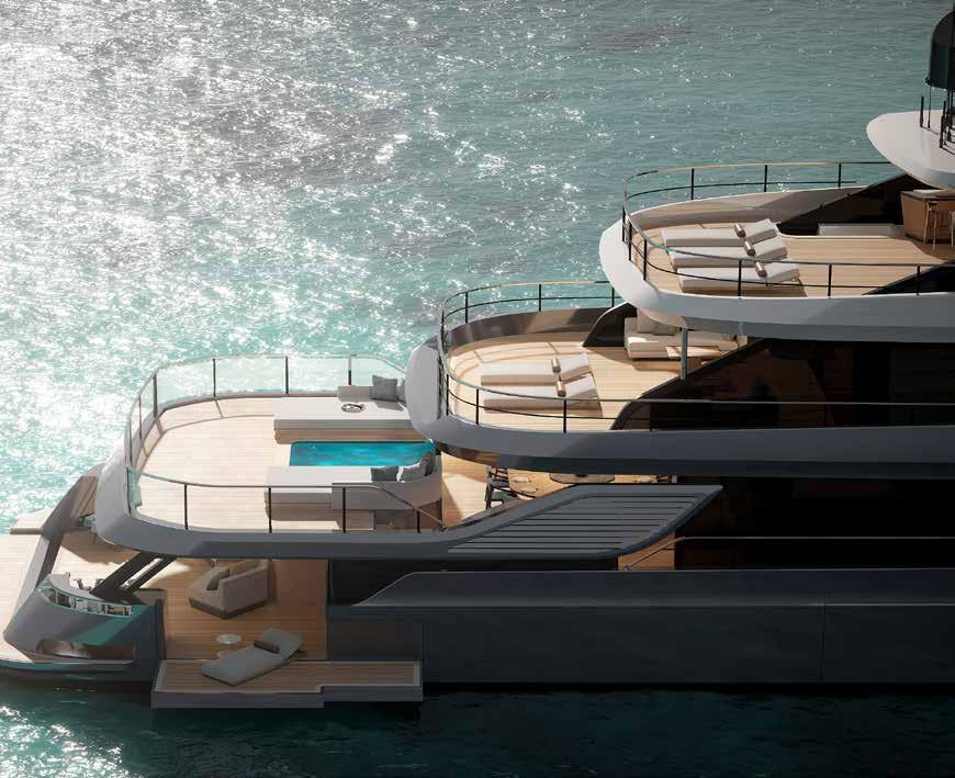 Water is the key element in the narrative told by m²atelier, capturing its essence and giving back fluidity, dynamism and reflections. m²atelier, a firm with an international reputation for creative projects in multiple sectors – from residences and hotels to retail and product design – brings as a distinctive signature for Azimut a clear message, accented by refined, subtle, whispered details that seduce with a discreet simplicity completely free of affectation or overemphasis.