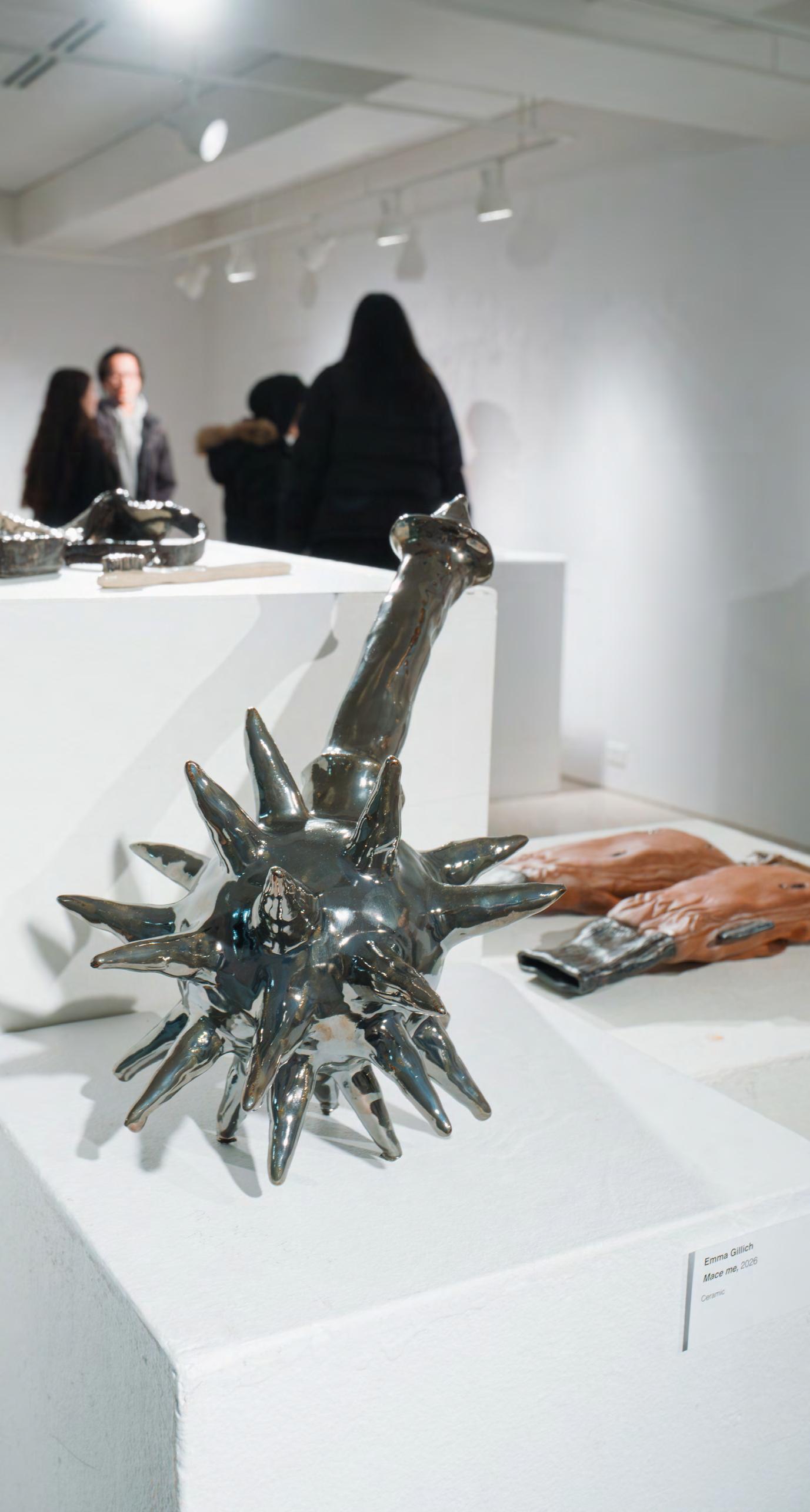 Emma Gillich, one of the featured artists and the Manitoban’s graphics editor, created “Mace me,” a spiky ceramic mace coated with a dark glaze. She commented that humour is an integral element
