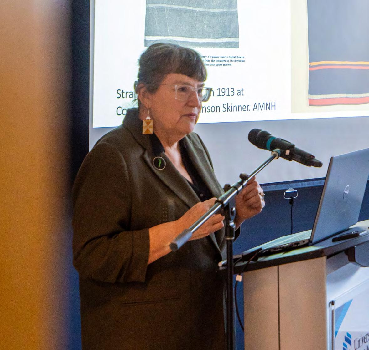 U of M students and faculty gathered in St. John’s College for the Centre for Human Rights Research event Stitching Histories: A Scholar-Artist In Archives And Museums on March 11 to hear Indigenous scholar Sherry Farrell Racette present her research on historic garments, especially those with limited provenance.