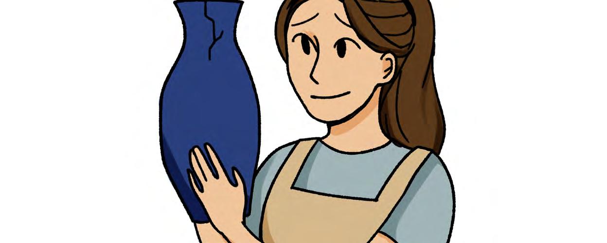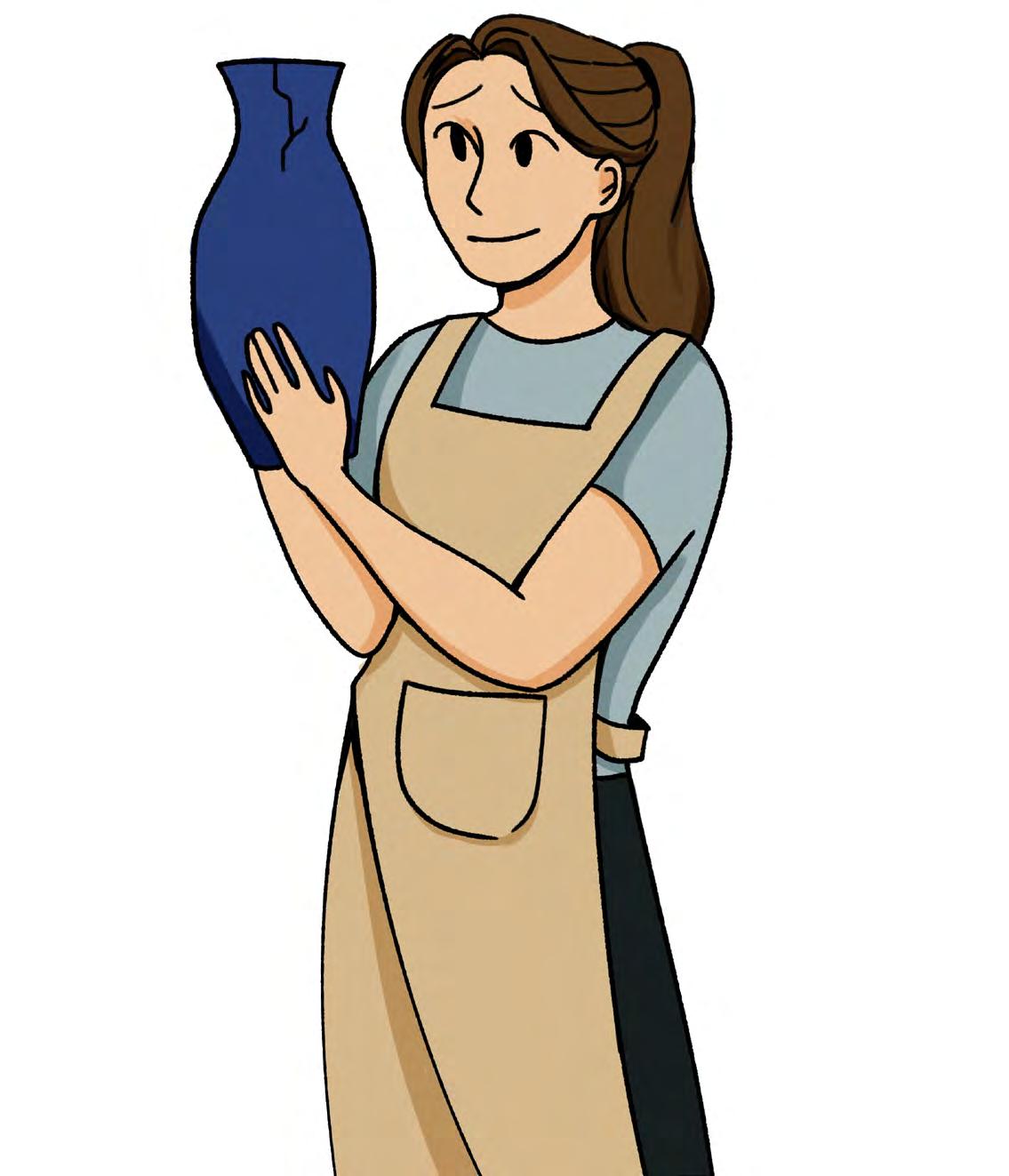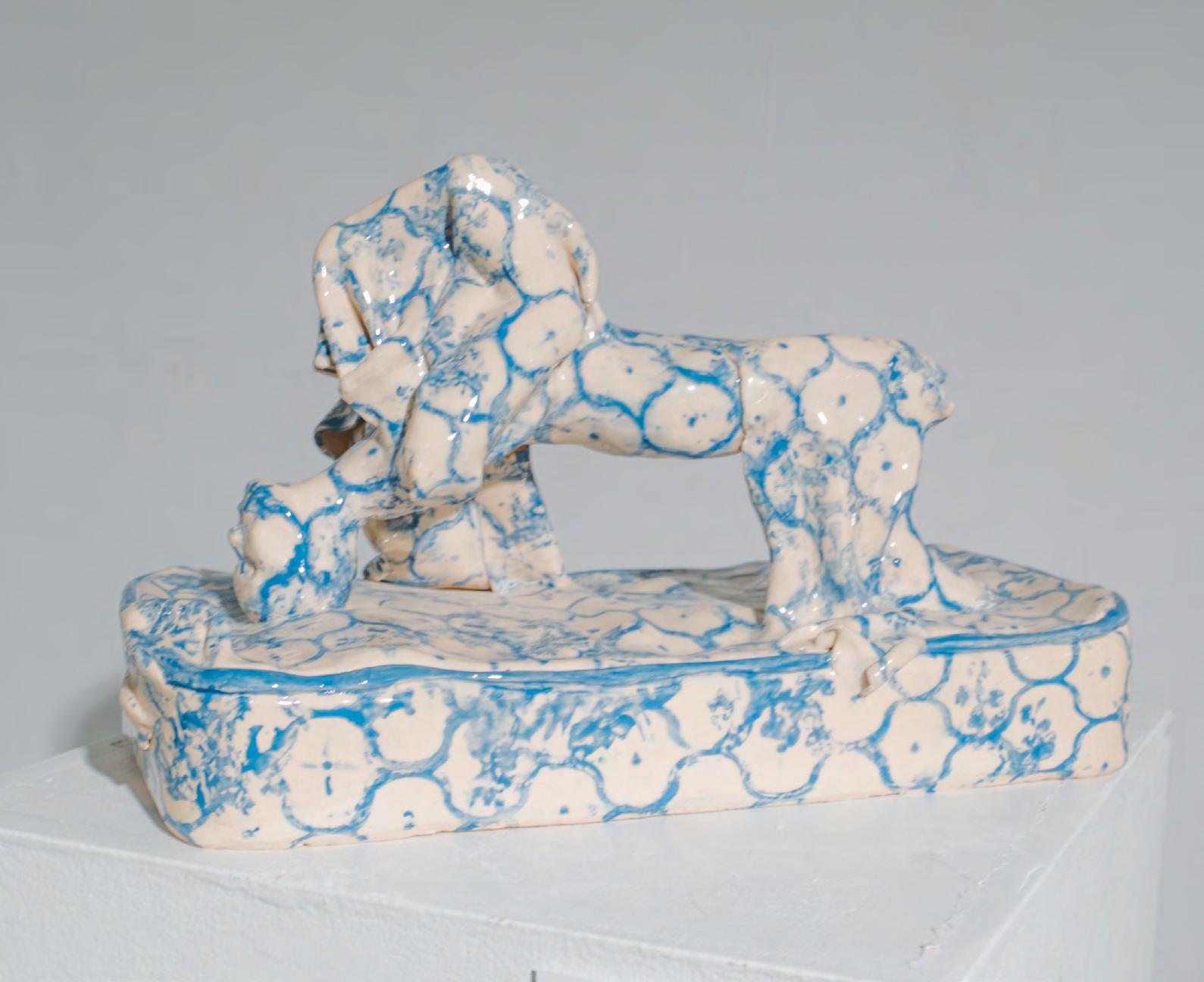in the ARTLab. reCLAYm featured works by Alsip and 13 other students. One of pieces is Alsip’s “matter & mattress,” which shows a figure levitating above a bed with a colour scheme reminiscent of blue and white pottery.