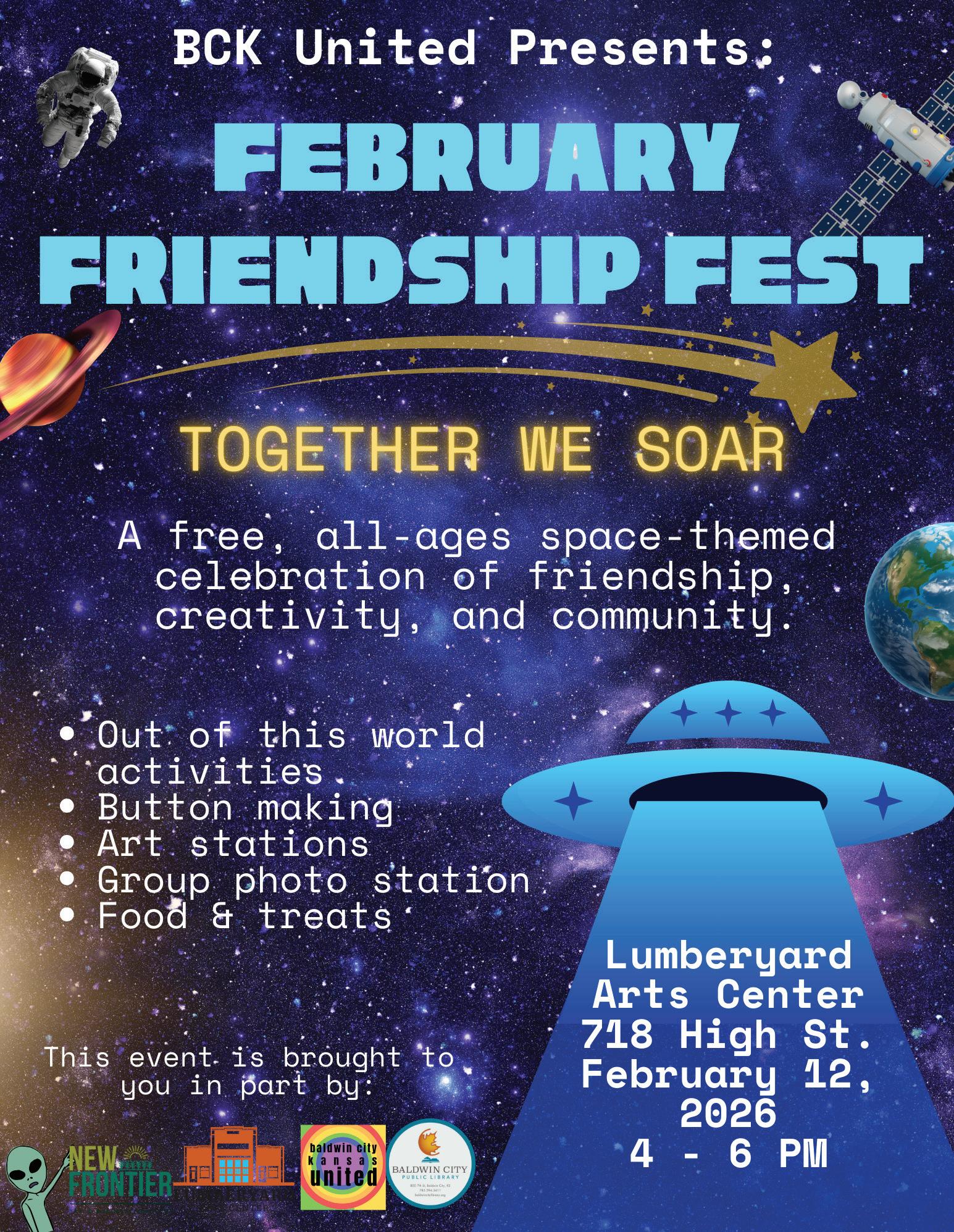 A celebration of friendship, creativity, and community will return to Baldwin City this February as BCK United presents the February FriendSHIP Fest, a free, all-ages event designed to bring people together in a joyful and inclusive space.