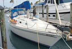 27’ CATALINA 1978 - Just reduced by $5k! Newer 20hp Westerbeke diesel installed in 2010. New ZF transmission installed in 2015, engine hours 19.6. Has tiller steering with Raymarine ST plus tiller pilot. Has head. New wiring and AC/DC panel. Battery charger, VHF, 2 anchors, chain and line. Nice main sail, roller furling. Many extras, too many to list. $6,900. Call Rick for showing at 954-325-8100. PDR1005