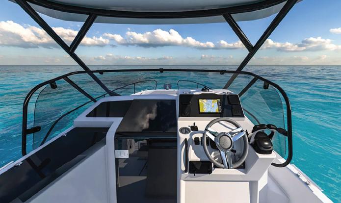 All the Flyer models feature an elegant pearl-grey hull complete with special decorative features, a symbol of the range’s modernity. The boat’s beautiful distinctive look is complemented by black pulpits and handrails.