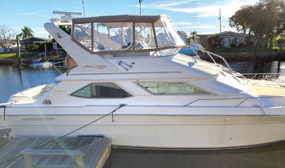 2006 - Twin V-Drive C-12 Caterpillar Diesels 715hp each, under 430hours. Twin CAT generators 21.5kW and 27kW, huge amount of room inside and out, two staterooms, two heads, fully enclosed A/C flybridge, country kitchen, full suite of electronics, currently under renovation. $895,000. Capt Robert Corner, American Yachts, 239.691.0252. PDR1010