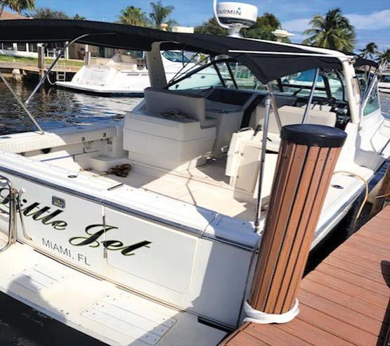 33’10” RINKER 320 EXPRESS CRUISER 2006 - Twin 260hp VolvoPenta V-8 engines with 700 hours. Professionally maintained. Recent bottom paint. New engine manifolds and elbows in March 2023. She is kept pristine by owner. Has new cockpit carpets, flawless cabin interior, newer eisenglass full enclosure. $44,900. Naples Used Boats & Yachts 239-571-4500. PDR1031