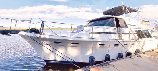 Cummins. Classic two stateroom, dual head, galley down “Sundeck” Trawler with minimal exterior teak. Ready for the loop. Location: Dunedin. $199,000. Contact Mark 727-580-3441, Sandy Hook Yacht Sales. PDR971