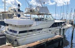 and good running engines. It is suffering from rot in the cabin top supports caused by leaks on the flybridge. The rotted support beams will need to be replaced. She also needs a lot of general cleanup and updating from recent neglect. It will need new batteries and seasonal prep. She is a great platform and well worth the effort. Take and look and make your bid. Location: Melbourne, FL. Taking Bids. YachtSalvage.com 401-732-6300.
