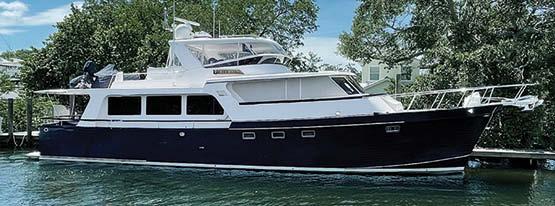 1988 - The perfect blend of live aboard / Cruising yacht. Full walkaround decks for easy line handling. The huge full width master suite features a large king sized bed with seating area, large head with full size Jacuzzi tub/shower and private separate stair case for access. Your guests have 3 staterooms forward with 2 heads with showers. $449,900. Capt Scott Slater, American Yachts,