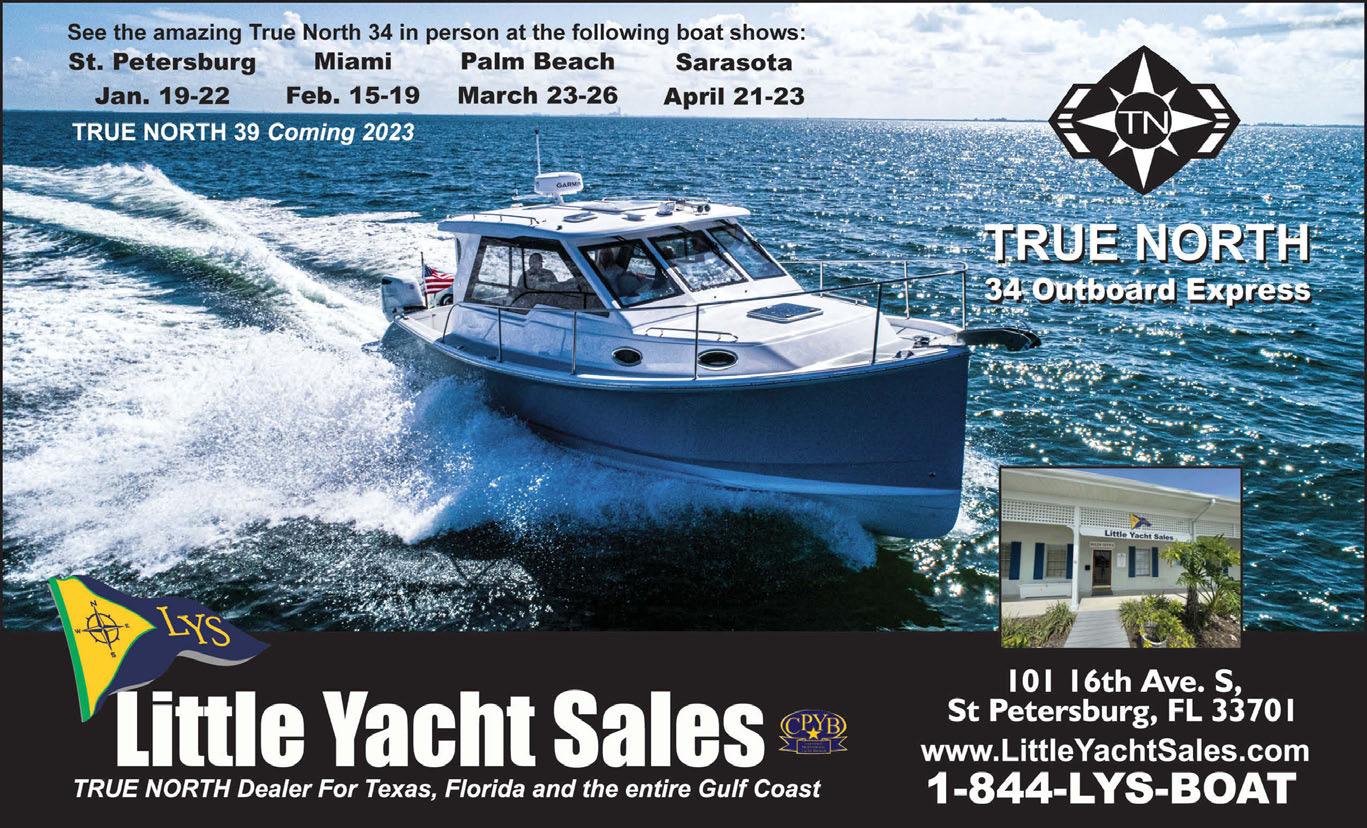“Bueller” boasts a 5 cabin layout and many recent upgrades including 3 air units, inverter/charger, chart plotter and radar, stove, canvas and much more. She is offered at $184,900. Call Rick Weiler at Little Yacht Sales (832) 738-6251.