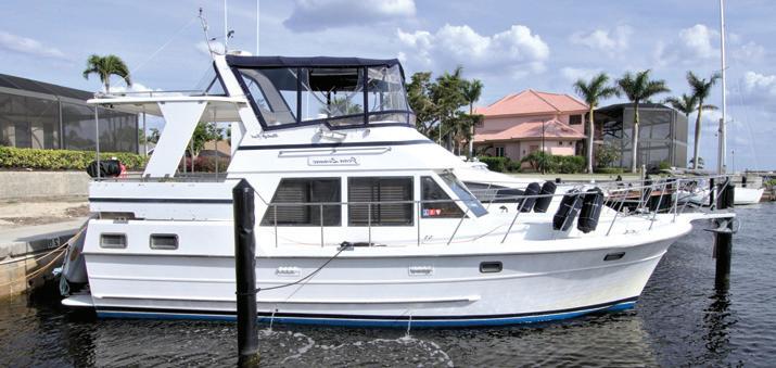 C ommeri CA l 58’ 2006 BearCat Marine Catamaran $1,350,000 s A ilboAts 48’ 1983 Cherubini Schooner $360,000 46’ 1976 CAL 2-46 Sloop $165,000 44’ 1993 Van De Stadt 44 Sloop ........................... $124,900 42’ 2006 Manta MKII Catamaran $349,900 t r Awlers 100’ 1955 Admiral 100 Steamship $2,000,000 86’ 1986 Stephens Enclosed Pilothouse $899,900 58’ 1978 Hatteras LRC CPMY $199,000 55’ 1981 Cheoy Lee LRC Trawler SOLD 55’ 1956 Trumpy 550 Cockpit Motor Yacht $124,900 43’ 1975 Gulfstar 43 Trawler $54,900 40’ 1985 Vista 40 Sundeck MY $59,500 36’ 2000 Heritage East 36 Sundeck $149,500 34’ 1986 Tiger Marine Sundeck Trawler $84,500 26’ Nordic 26 Tug $63,500 d owne A st 36’ 2002 Zimmerman Z36 Downeast $249,000 34’ 2001 Mainship 34 Pilot Soft Top $109,000 34’ 2000 Mainship Pilot Expedition $129,000 34’ 1983 Willbur 34 Downeast Trawler $59,900 30’ 2003 Mainship 30 Pilot II Hardtop $119,000 m otoryAC hts 60’ 1996 Viking Cockpit Sport Yacht $319,900 58’ 1977 Bertram 58 Motor Yacht SOLD 50’ 2001 Carver 506 Motor Yacht $305,000 43’ 1989 Vista 43 Motor Yacht $112,500 42’ 1968 Chris Craft 42 Commander $43,900 39’ 1993 Carver 390 Cockpit MY $69,900 39’ 2007 Silverton 39 Motor Yacht SOLD 37’ 1997 Silverton 372 Motor Yacht $135,000 e xpress C ruisers 45’ 2013 Sea Ray 450 Sundancer $429,900 45’ 1995 Sea Ray 450 Sundancer $109,900 43’ 2007 Tiara Yachts 4300 Sovran $394,900 40’ 1998 Carver 405 ACMY $134,900 40’ 2003 Tiara 4000 Express $239,000 31’ 2005 Chaparral 310 Signature $49,700 30’ 2007 Cruisers Yachts 300 CXi Express $49,995 24’ 2007 Sea Ray 240 Sundancer $33,900 F ishing 60’ 1986 Egg Harbour 60 Sport Yacht $289,000 55’ 2002 Hatteras 55 Convertible $579,000 41’ 2006 Luhrs 41 Convertible $274,900 36’ 2012 Grady-White 366 Canyon $274,900 35’ 2004 Luhrs 35 Convertible $169,500 35’ 2004 Marlago 35 Cuddy $114,900 31’ 1999 Fountain 31 Sportfish OB $69,000 26’ 2021 Sea Fox 268 Commander ....................... $144,000 26’ 2022 Stoner Open CC SOLD 23’ 2022 Stoner CC Open $170,000 p erson A l w AterC r AF t 11’ 2019 (2) Yamaha Waverunner VX HO $30,000 Find your perfect match, call us today 1-877-AMYACHT 1-877-269-2248 Let our Most Experienced Brokers represent you F ort M yers 239.332.8808 r iviera D unes , P al M etto 941.417.2814 r egatta P ointe , P al M etto 941.779.0605 Call 45’ Sea Ray 450 Sundancer - $109,900 Capt Jamie Switzer 706.318.7020 43’ Tiara Yachts 4300 Sovran 2007 - $394,900 Jamie Switzer 706.318.7020 55’ Trumpy 550 Cockpit Motoryacht 1956 - $124,900 Lance Lane 941.626.1264 58’ BearCat Marine Catamaran 2006 - $1,350,000 Robert Corner 239.691.0252 46’ CAL 2-46 Sloop 1976 - $165,000 Ross Wiltse 630.699.5066 50’ Carver 506 Motor Yacht 2001 - $305,000 Ross Wiltse 630.699.5066 36’ Heritage East 36 Sundeck - $149,500 Mike Mascari 239.980.2202 48’ Cherubini Schooner 1983 - $360,000 Gordon Burgess 941.356.4522 42’ Manta MKII Sail Cat 2006 - $349,900 Mike Mascari 239.980.2202 40’ Carver 405 AC Motor Yacht 1998 - $134,900 Mike Mascari 239.980.2202 40’ Tiara 4000 Express 2003 - $239,000 Mike Mascari 239.980.2202 41’ Luhrs 41 Convertible 2006 - $274,900 Capt Jamie Switzer 706.318.7020 55’ Hatteras 55 Convertible - $579,000 Mike Mascari 239.980.2202 86’ Stephens Pilothouse Motor Yacht - $899,900 Capt Scott Slater 813.928.3820