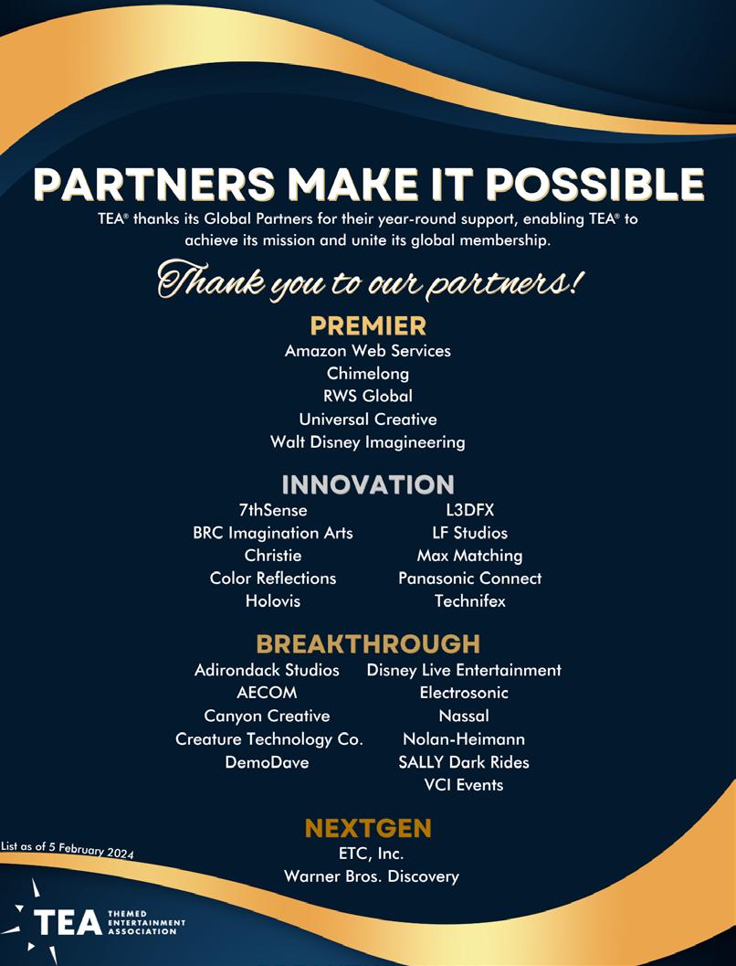 AECOM is proud to count numerous clients and collaborators amongst Thea Award recipients over the years. With over 60 years of experience, AECOM provides unrivaled expertise in the business of entertainment. Our extensive practice in the creation of themed environments, visitor destinations, hotels and resorts, and world-class cultural attractions, has equipped developers, operators, and investors with economic analysis and a pulse on historical and emerging trends so they can make informed business decisions. AECOM is also excited to continue our partnership with the TEA on the 18th annual Theme Index and Museum Index, creating an important resource and offering a yearly peak into the global attractions industry for professionals and fans alike.