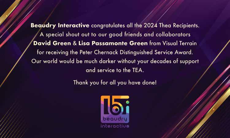 visions to life. Part of the Thea Awards process is the delivery of a comprehensive credits list, furnished by the project owner and published by TEA to celebrate these partnerships and collaborations and recognize the many disciplines within our unique industry. We come together to celebrate these incredible achievements and achievers and be inspired to raise the bar even higher.