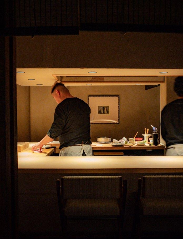 From the moment you enter, the space feels very Japanese. The light is soft and subdued, the colour palette is restrained, and the materials are honest and tactile. Wood, stone and fabric are used with precision, and nothing feels decorative or unnecessary. The atmosphere is calm, but also very intentional.