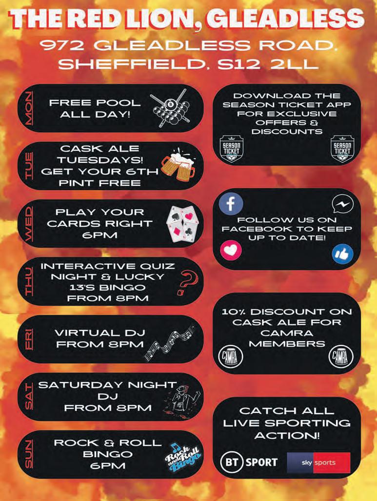 LOCAL FOOTBALL & SPORT // 7 DAY TV LISTINGS // 50+ NEWS & ADVICEISSUE 1489 // 19 T h OCT - 25 T h OCT The Region’s Number One Entertainment & Classifieds Newspaper E9003 Tel: 0114 2448556 620 Attercliffe Road, Sheffield S9 3QS Fancy a Cruise? Amazing deals to set sail in 2022 and 2023 Part of hays Travel UK’s largest independant Travel Agency OPEN TO ThE PUBLIC MON, TUE, ThU, FRI 10AM - 4PM we Are open! www.fb.com/travelmoreadmin / travel@travel-and-more.co.uk Book Now for National holidays, Shearings, Leger and Abroad deals with Jet 2 holidays only £60pp deposit, Easyjet holidays only £60pp deposits and deals with Tui for Winter 2022/23 and Summer 2023 Members of ABTA and agents for ATOL protected Operators. HolidAys UK And AbroAdLOTS OF AVAILABILITY TO MOST DESTINATIONS FROM LOCAL AIRPORTS SOME WITh FREE ChILD PLACES FOR WINTER 2022/23 AND NOW SUMMER 2023 ONLY £60PP DEPOSIT TO SECURE YOUR BOOKING 329 COLEFORD ROAD • SHEFFIELD • S9 5NF CALL US ON 0114 256 1975 FIND US ONLINE AT WWW.ShEFFIELDDISCOUNTFURNITURE.CO.UK OPEN MONDAY - SATURDAY 10AM - 5PM PUBLIC NOTICE COME & GRAB YOURSELF A BARGAIN!!! ALL STOCK REDUCED EVERYTHING MUST GO! SALE NOW ON! CLOSING DOWN SALE TILES - WALL & FLOOR (PORCELAIN / CERAMIC) ADHESIVES GROUTS TILE ACCESSORIES UNIT 3, CANAL WORKS, CADMAN STREET, SHEFFIELD S4 7ZG info@victorytiles.co.uk www.victorytiles.co.uk 07761 339471