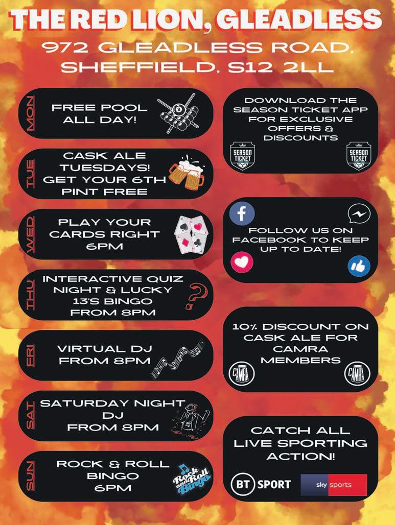 tel: 0114 2448556 620 Attercliffe Road, Sheffield S9 3QS Part of Hays Travel UK’s largest independant Travel Agentm Members of ABTA and agents for ATOL protected Operators. E9003 E9003 LONG HAUL GETAWAYS THAILAND - PATTAYA 1st Dec 2022 - 9 nts at the Centara Pattaya Hotel on BB from Manchester Ethiad Airways based on two sharing £879pp Private transfers can be added for £40pp Deposit to book £75pp SINGAPORE & BALI Depart Manchester 1st February 2023 3 nights Singapore at The Miramare hotel BB 9 nights in Bali - Kuta/Legian The One Legian BB Cost £1359 based on 2 sharing Deposits £75pp ULTIMATE ORLANDO 2023 14 Nts staying at Rosen Inn International RO Based on 2 adults & 2 Children (2-11) Includes 14 day ultimate Disney Ticket + 3 Park Universal Ticket Return Airport Transfers 30th May 2023 cost £2069pp 18th July 2023 cost £2499pp 8th August 2023 cost £2499pp Deposits £75pp Plus many more offers available this Summer 2022, Winter 22/23 please contact us for further details. travel@travel-and-more.co.uk www.fb.com/travelmoreadmin LOVE YOUR LOFT Mobile: 07517 437302 Freephone: 0800 0855 322 www.loveyourloft.co.uk 9 sqm flooring, ladder, hinged hatch & light ONLY £495 BaRGaIN BUStER Loft ladders & hatches supplied & fitted from £170 Other packages & upgrades available tERRY’S FURNItURE cENtRE Wordsworth Drive (Off Wordsworth Avenue) • Sheffield S5 8NP TerrysBargainCentre 0114 231 0441 3 PIECE SUITES DINING SETS BEDROOM FURNITURE top pRIcES paID! WANTED!!!