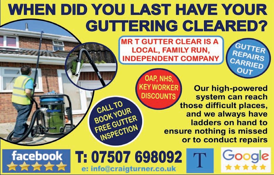 The North’s largest entertainment weekly Call our sales team to get your advert on these pages on 0114 276 3633 opt.1 • 19 The Mercury Newspaper www.mercurynewspaper.co.uk Published 5th April 2023 carpet fitting Chapeltown Aerials CCTV & Electrical Ltd Matt: 07876 363 015 0114 246 5198 Find us on Facebook info@chapeltownaerials.com Covering all South Yorkshire DIGITAL AERIALS 3 Freeview Aerial 3 Extensions 3 Multi-Room • Sky 3 Freesat 3 TV Wall Mounting 3Retune 3 Smart TV Setup 3 Aerial Upgrades 3 Amplification tV/aeriaLS VISIONARY BLINDS VISIONARY BLINDS 0800 5999 336 07802 496800 0800 5999 336 07802 496800 info@visionary-blinds.co.uk FREE QUOTATIONS & INSTALLATION Vertical • Roller • Roman Pleated • Wooden Venetian • Perfect-fit Plantation Shutters • Velux Insect-screens • Patio Awnings BLinDS ALL SIZE SKIPS HOUSEHOLD • COMMERCIAL • INDUSTRIAL 95% OF WASTE RECYCLED HILLFOOT WASTE ALL MAJOR CARDS ACCEPTED CHEAP RATES 6 DAYS A WEEK TEL 2331010 SKIPS AVAILABLE MINI SKIPS, 3 TON, 4 TON, 6 TON, 8 TON (SOIL, BRICK, RUBBLE/WOOD/MIXED) 16 YARD (WOOD) SKip Hire DIXONS SKIPS The Area’s Best Prices... ...We Won’t be beaten! TELEPHONE 07970 276 862 | 0114 242 3054 OPEN 6 DAyS DC TEL: 0114 242 1906 MOB: 07909 617 134 ANYTIME CARPETS • Carpets Fitted & Re-Fitted • 30 Years Experience • All Material Supplied pLUMBing & Heating Gas Central Heating Specialists Full comprehensive Service Plans including Annual Service 01246 200990 www.blueflameheatplan.co.uk • Servicing • Upgrades • Repairs • Landlord Certificates • Full Installations • Power Flushing Blue Flame Blue Flame wANTED METALWORKING LATHES • Engineering Tools • Lathe Tools • Small Workshop & Garage Clearances Tel: 0114 2651352 Mob: 07791 490263 wanteD LICENSED PRIVATE HIRE Available for • Weddings • Airports (All Airports) • All Coastal work • Private Parties • Superb Vehicles Telephone Anytime 07747 787551 (Anytime) We’ll Never Let You Down! we offer some of the best rates in the region for.... Licence Notices, GV Operator Notices, Trustee Act Notices Call Us On 0114 276 3633 gUttering SHeDS & garageS CONCRETE GARAGE REFURBISHMENT CONTACT GARy 07792 089486 www.gracepropertyservices.uk NEW ROOF, WINDOWS & DOORS LICENSED ASBESTOS REMOVAL NO NEED TO EMPTY THE GARAGE The Licensing Act 2003 Section 34 Notice is hereby given that We: crAfTWorkS micropub LTd Have made an application under Section 34 of the Licensing Act 2003 to vary a Premises Licence for the Premises known as 38c-38d high STreeT, moSborough SheffieLd S20 5Ae The details of the variation are as follows: To extend the hours for the: Sale by retail of alcohol for consumption ON & OFF the premises: New Year’s Eve 09:00 - 01:00 the following day Provision of regulated entertainment namely: playing of recorded music New Year’s Eve 09:00