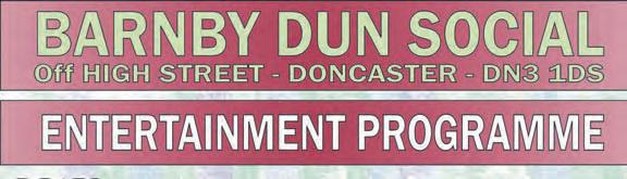 DONCASTER CAThOLIC CLUB WATERDALE • DONCASTER DN1 3BY TEL: 01302 364695 FOLLOW US ON FORTHCOMING LIVE MUSIC FORTHCOMING LIVE MUSIC FRIDAY 29Th SEPT RESURRECTION playing timeless rock classics TUES 26/09 TUES 03/10 JOhNNY MARTELL CRAIG MIChAELS LIVE 60s AFTERNOONS LIVE 60s AFTERNOONS NEW MONTHLY ROCK NIGHT JUST £3 ENTRY NEW MONTHLY ROCK NIGHT JUST £3 ENTRY