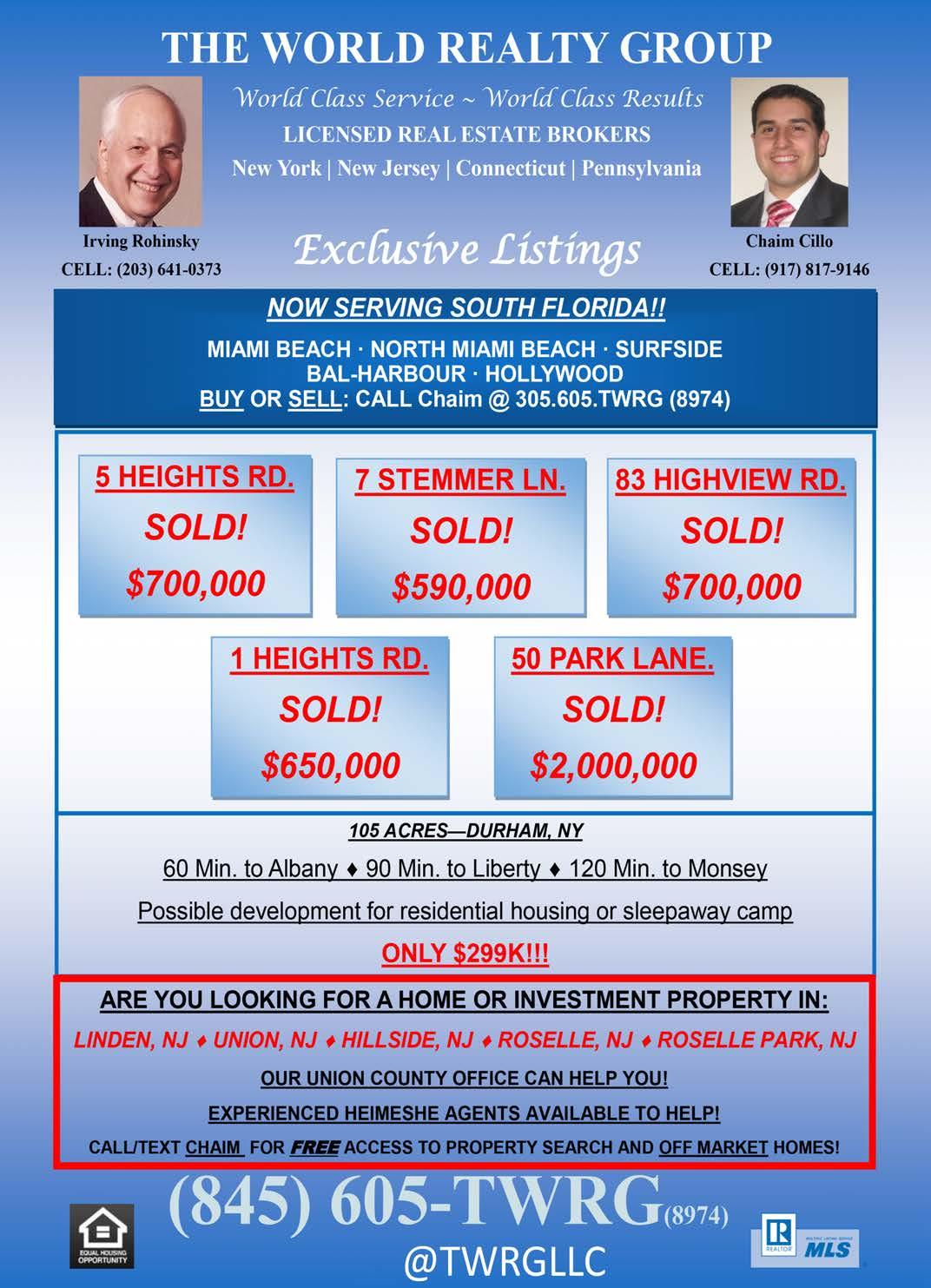 MONSEY, NY WEATHER FORECAST THURSDAY 56°/36° 7% FRIDAY 61°/40° 15% MONDAY 62°/43° 30% SHABBOS 67°/43° 9% TUESDAY 60°/41° 25% SUNDAY 63°/49° 20% WEDNESDAY 61°/42° 55% The Everest Equity Company, Inc. Registered Mortgage Broker New York State Department of Financial Services. Mortgage Broker Licensed by the New Jersey Department of Banking and Insurance. Licensed Mortgage Broker CT, PA, FL and NC Banking Departments. Loans arranged through third party providers. Company NMLS ID 12484 8 4 5 3 5 7 6 9 0 0 • n f o @ e v e r e s t e q u t y c o m • e v e r e s t e q u t y c o m 2 E X E C U T V E B L V D S U T E 2 0 1 • S U F F E R N , N Y 1 0 9 0 1 46 www.themonseyview.com 845.600.8484 The Monsey View October 20, 2022