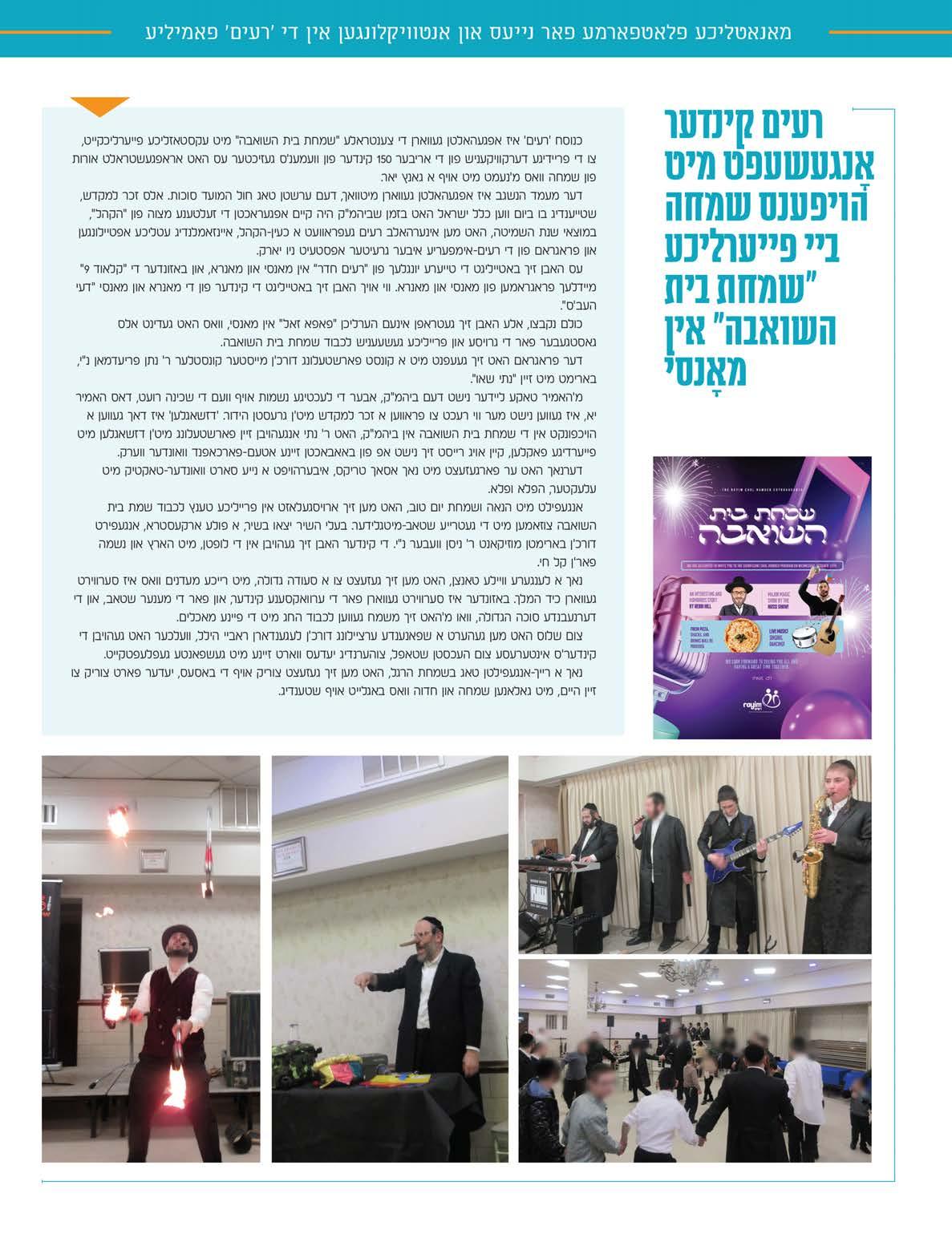On Yeshiva education, I, like you, believe every child de serves a good education but let’s be crystal clear here, parents are in the best position to determine what a very good educa tion is. It is one of the most important decisions we can make as parents, no parents should be called out or made to be felt as if they somehow aren’t good enough. Having met over the past decade, so many members of this community- they are suc cessful and well educated. You have every right to be insulted when articles only paint you in a negative light. It’s almost like it’s a parallel universe. So much of the success of this commu nity is based on the values and ethics that were taught from an early age. It’s evident even by just walking around. I will consis tently stand up for this. I have for the past decade and I will not stop.