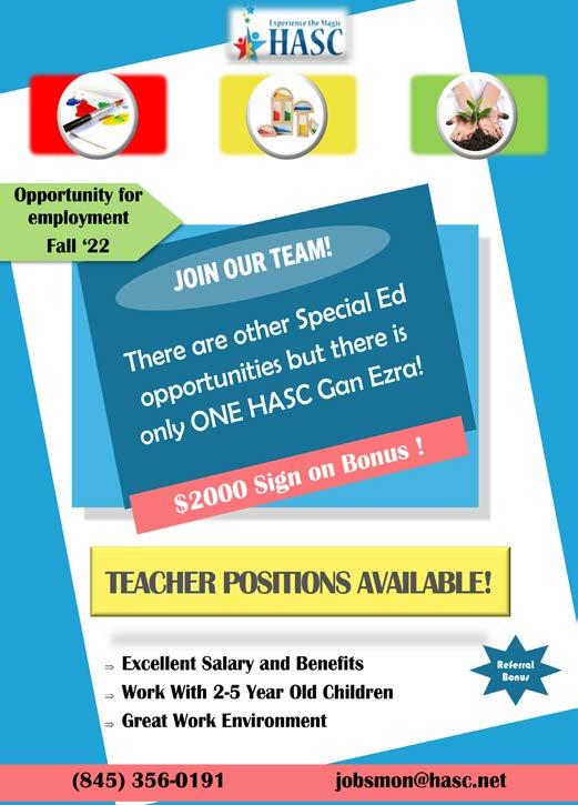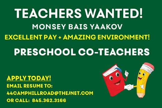 Preschool in Monsey looking for assistant. Great atmoshpere and Great pay! Call/text 845-476-1305