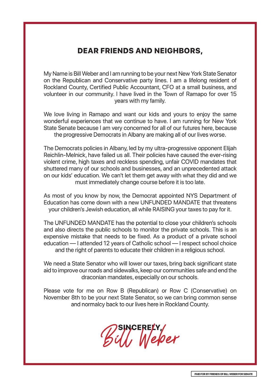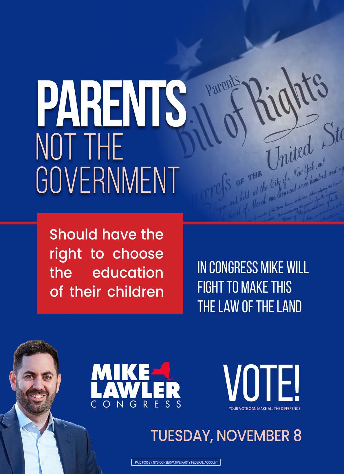 Congress Lee Zeldin, however, along with Assemblyman Mike Lawler, and several additional elected politicians, came out with state ments that strongly condemned the educational decrees. They have taken every opportunity to defend our system and values and denounce the state’s unacceptable decisions, and promised to put up a relentless fight to protect our rights.